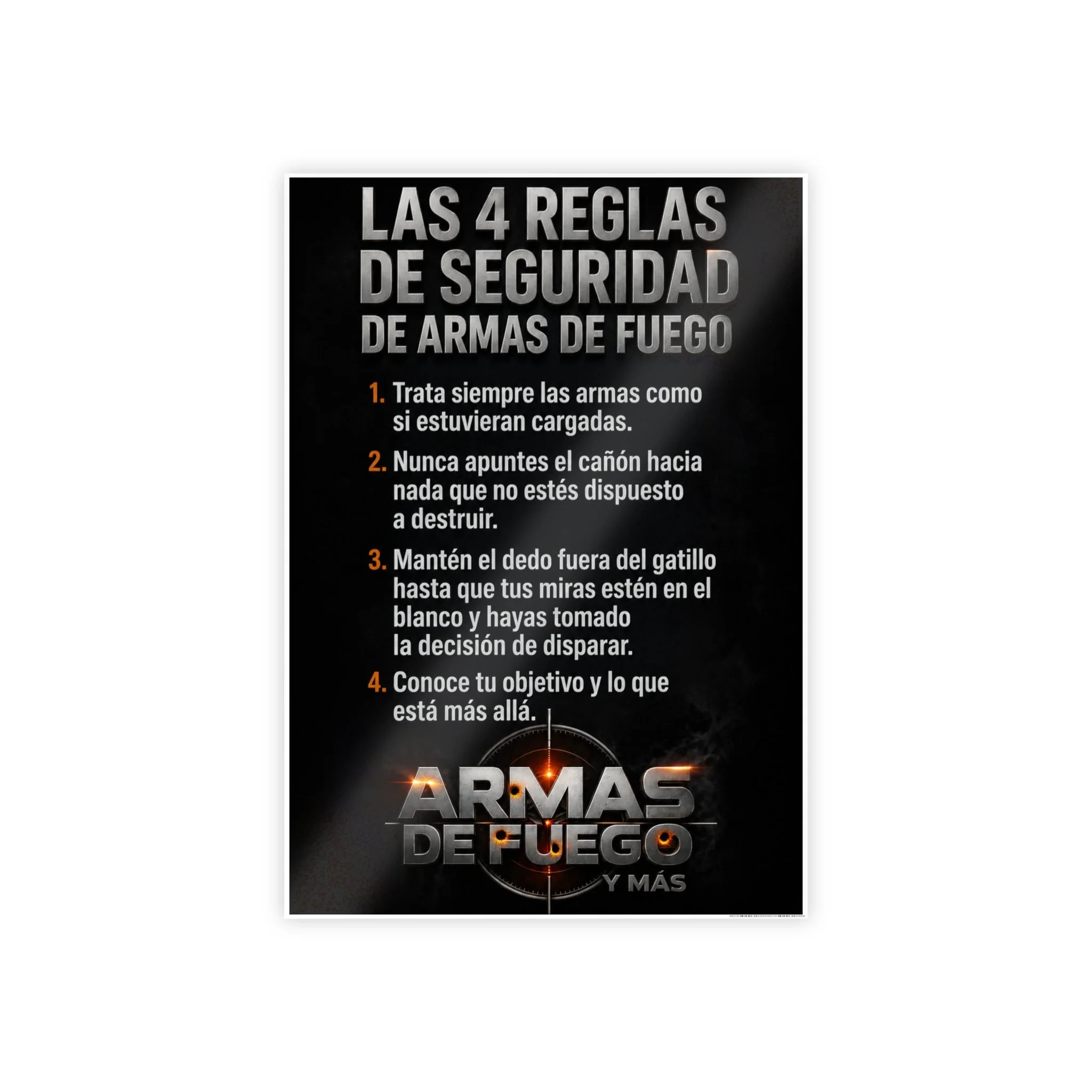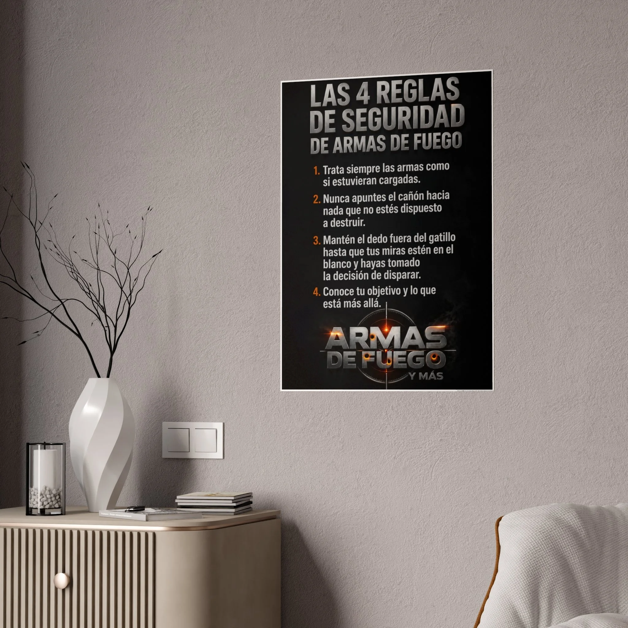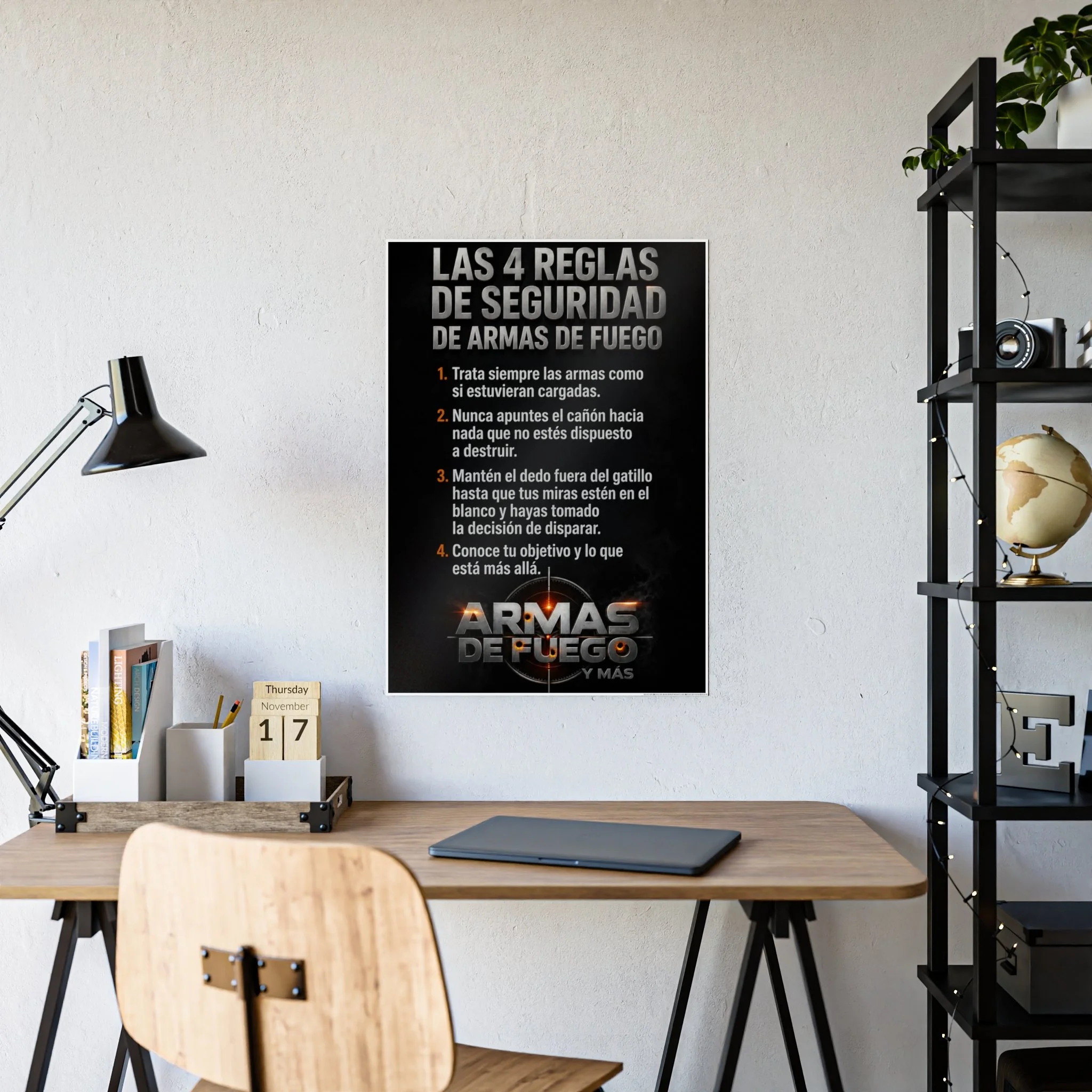 These high-gloss posters 23"x33" bring bold, statement-making visuals to any wall. The rich, saturated colors and crisp printing make text and graphics pop against a deep, dramatic background. Hung above a workspace, in a garage, or next to a home shooting-range décor, the poster sets a focused, purposeful mood — clear rules, clear intentions. The subtle 0.2" white border and barcode give each piece a contemporary, printed-art feel while the durable 185 gsm glossy paper holds up to handling and framing. Choose horizontal or vertical orientation and from four sizes to find the scale that fits your space and intent.